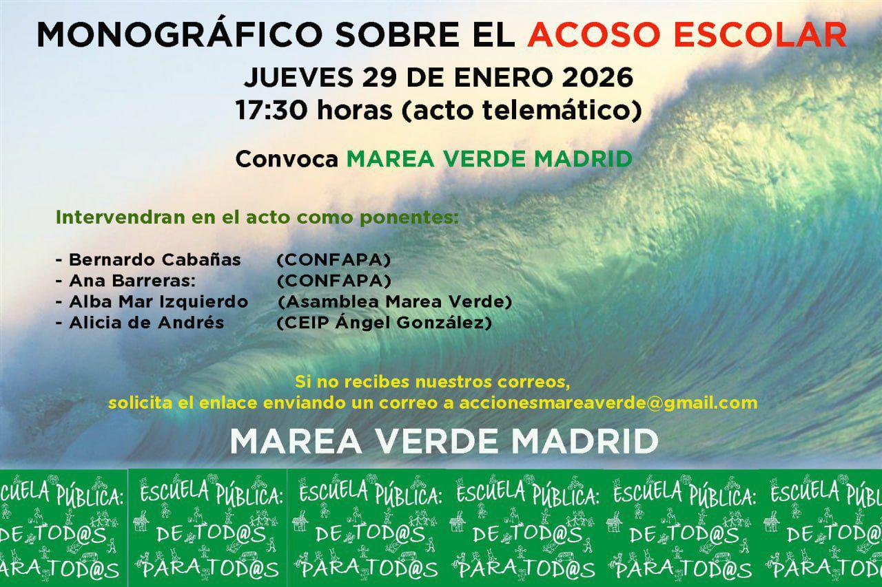 🔗 Más detalles en su blog: https://mareaverdemadrid.blogspot.com/2026/01/29-1-2026-monografico-el-acoso-escolar.html